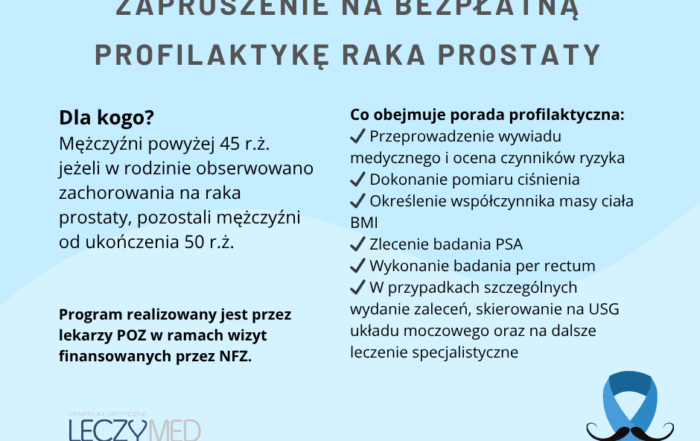 Zaproszenie na bezpłatną profilaktykę RAKA PROSTATY!