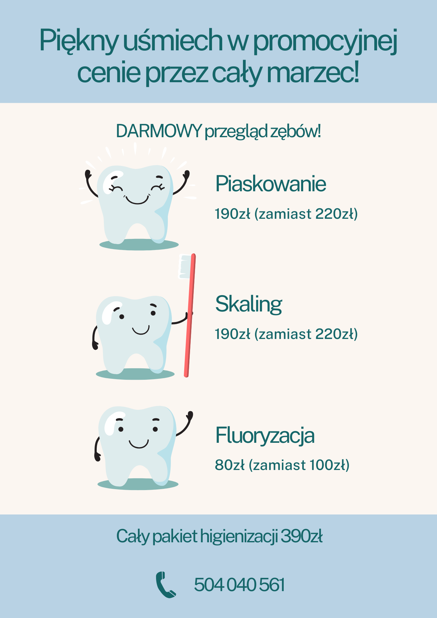 Piękny uśmiech w promocyjnej cenie + DARMOWY przegląd przez cały marzec!